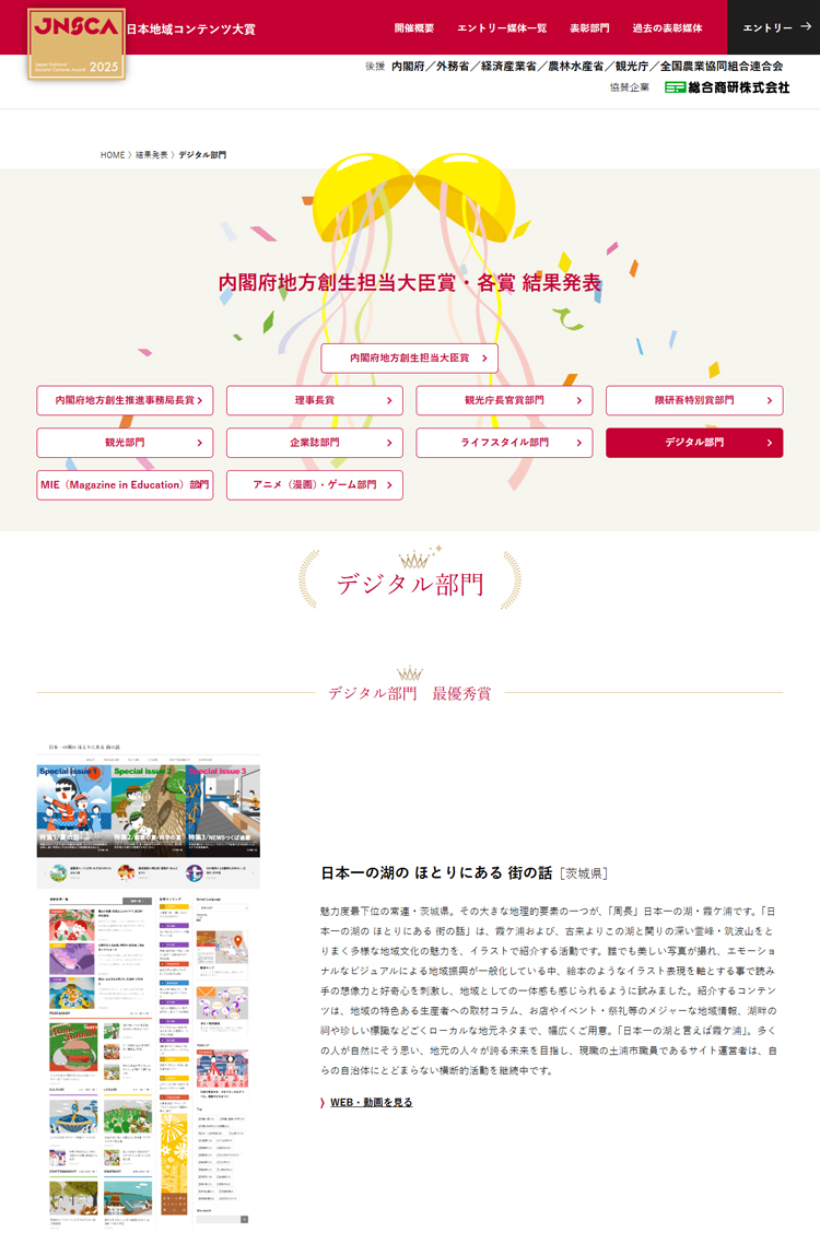 日本地域コンテンツ大賞2025にてデジタル部門最優秀賞を受賞しました